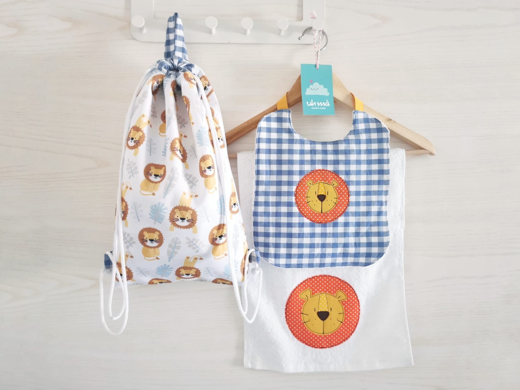 - Maxi bavaglino in spugna e cotone, con un comodo elastico