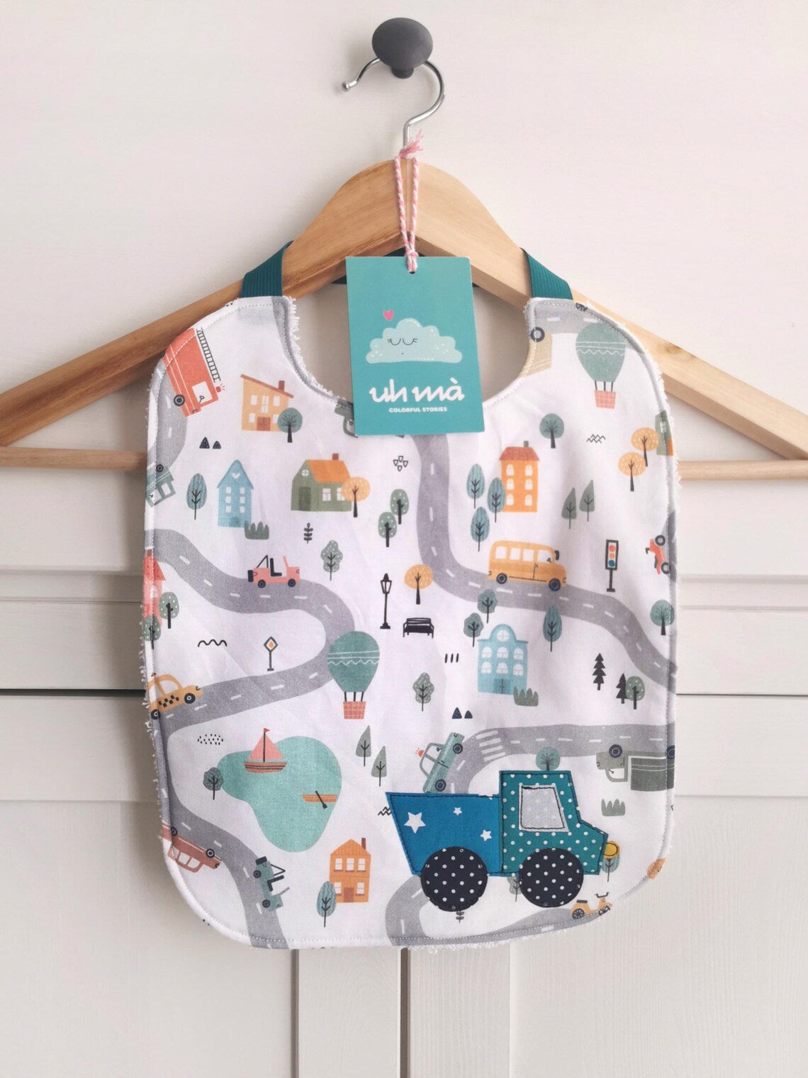 - Maxi bavaglino in spugna e cotone, con un comodo elastico