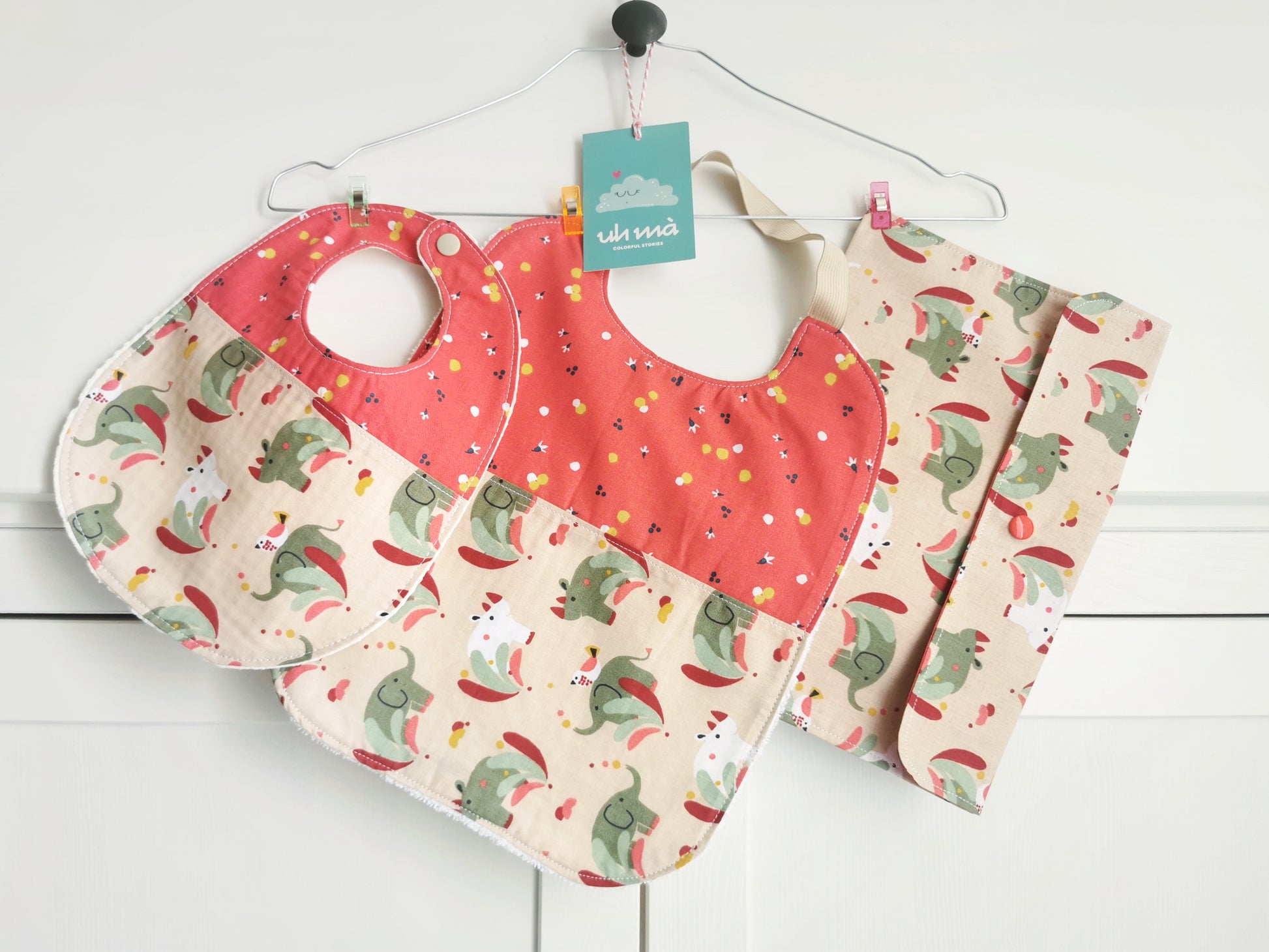 - Bavaglino con elastico, comodo e colorato, perfetto per l'asilo.