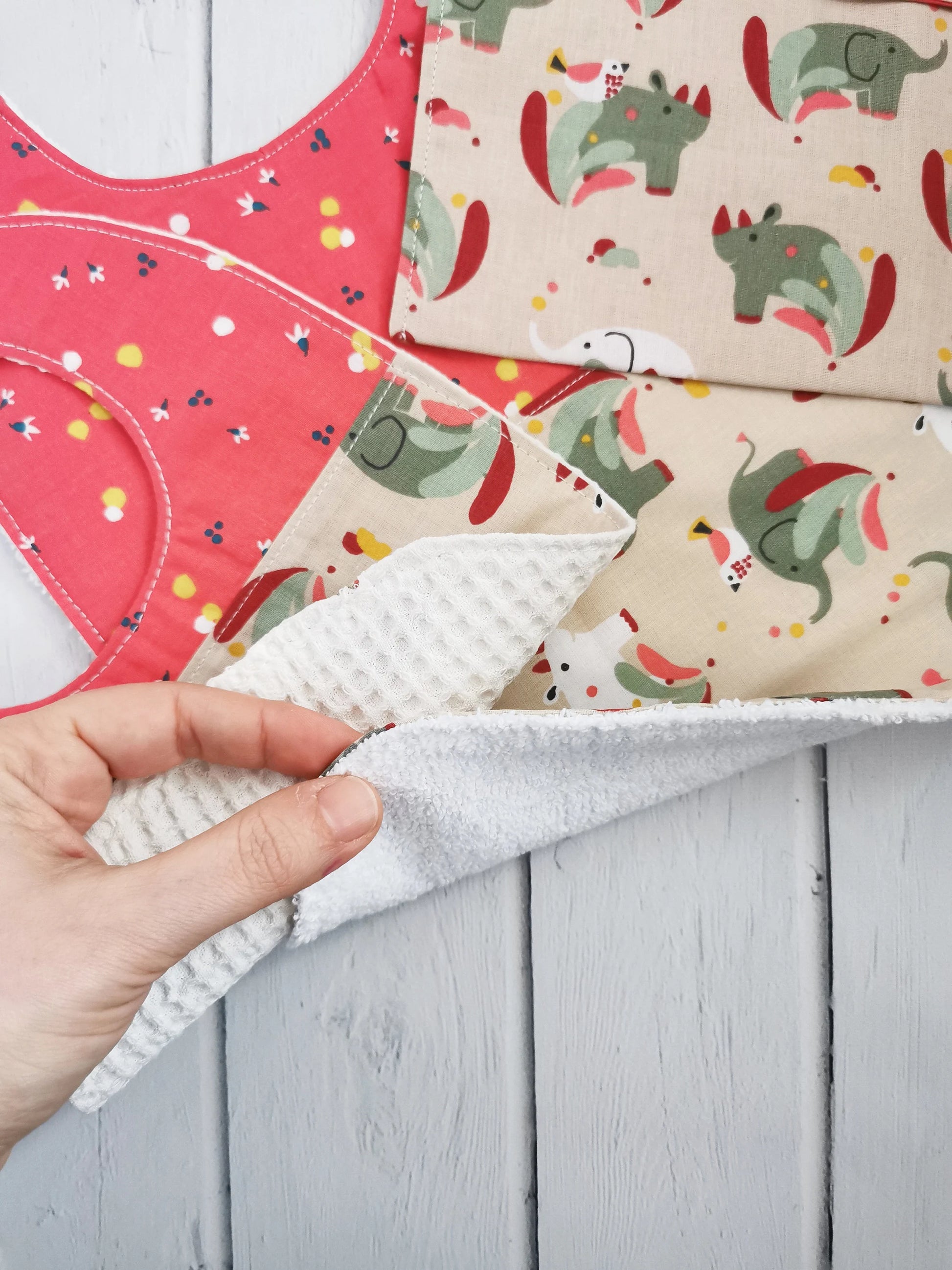 Questi bavaglini in spugna sono ideali per la pappa in autonomia, la spugna sul retro è morbida e spessa e con un alto potere assorbente.